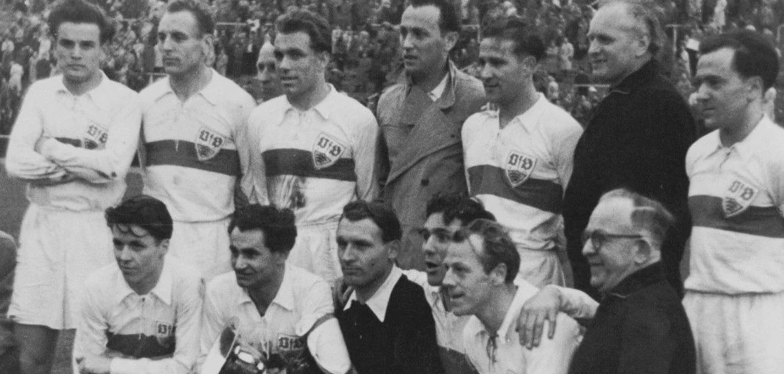 As a loyal companion over the past 100 years, the famous red hoop on the white shirt has witnessed the club’s biggest ever triumphs, including two German titles in 1950 and 1952 as well as DFB Cup wins in 1954, 1958 and 2025. It was halved in size for the Bundesliga triumphs in 1984 and 1992, the DFB Cup success in 1997, the UEFA Cup final appearance in 1989 and the UEFA Cup Winners’ Cup final appearance in 1998. When VfB were crowned champions in 2006/07, the team wore red shirts with a white horizontal stripe.