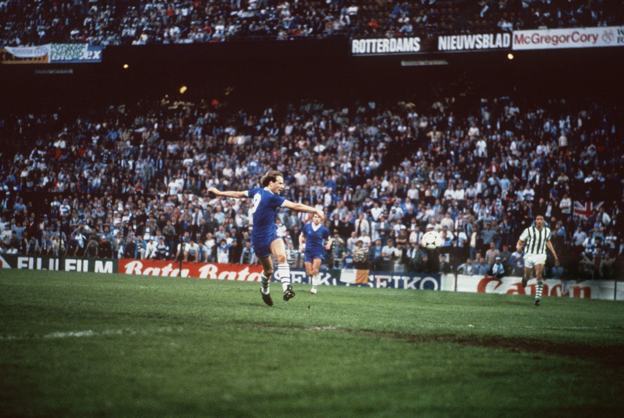 Andy Gray scores Everton’s first goal against Rapid Vienna in the European Cup Winners Cup Final, 1985.