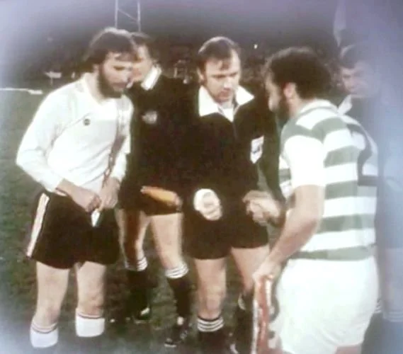Dundalk captain Dermot Keely and Celtic captain Danny McGrain ahead of the club's European Cup fixture in 1979.