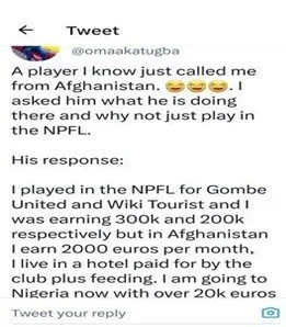 For context, 1 Euro is the equivalent of NGN 1700 (as of January 2025). This is huge money for any footballer playing locally in Nigeria and for this particular player, playing in Afghanistan is much more lucrative than playing in the Nigerian Professional Football League.