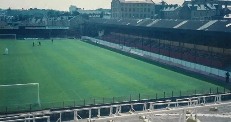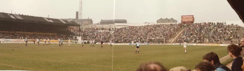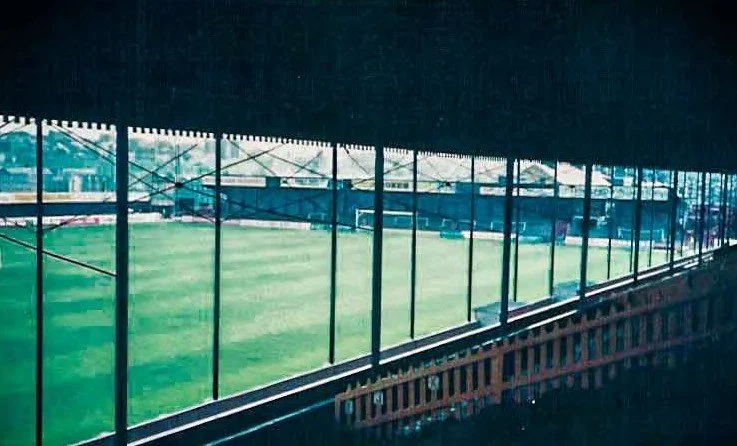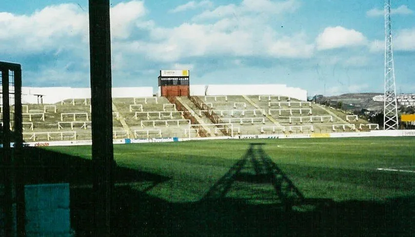 In its later years the stand roof was also used as a rather precarious looking TV gantry. Pity the guys who worked there on a cold Tuesday night. The stand was replaced and reopened in 1996. The steel from the old stand was sold to Barrow who intended to use it for their ground, but during their insolvency the steel apparently “disappeared”.