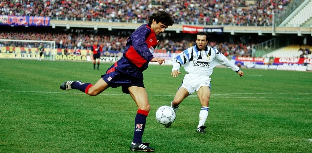 Despite an exceptional season at Marseille, after 1 year Francescoli was on the move again. This time he would land in Serie A with Cagliari, and then Torino. Serie A in the 80’s and 90’s was the place to be for elite footballers. The league was awash with money and stars. No offence to Cagliari, Torino, or any other club of a similar stature, but, you might be wondering why a player of Enzo Francescol’s profile and talent didn’t join a traditional power-house of Italian football? Well, this wasn’t unusual for the Italian game at the time. The reputation of the league was such that even so-called smaller clubs could attract top players. Zico rocked up at Udinese. Socrates at Fiorentina. Napoli were not the club they are today when Diego Maradona arrived. These were the footsteps Francescoli was following when he joined Cagliari.
