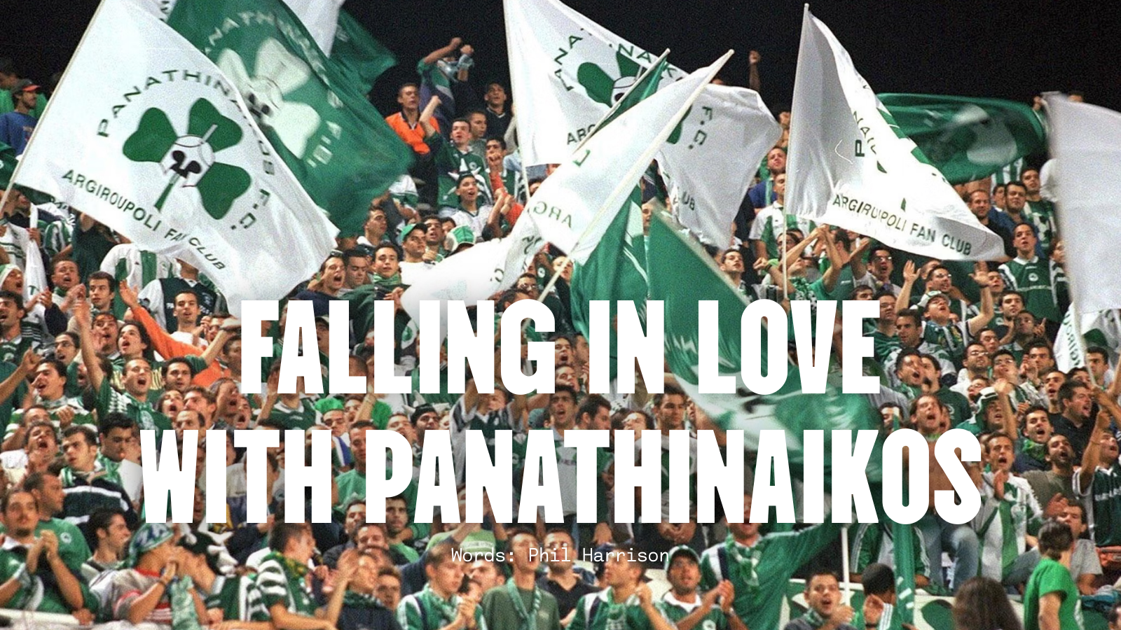 As I inched down the steep, mosaiced walkways towards my hotel and subsequent bed, dead on my feet, two young men of a similar age to my own, bedecked in green, sped by on a splutteringly ramshackle moped: its exhaust pipe hacking out thick reams of black-grey fumes. In their passing they waved, roaring an impassioned chorus of, ‘Ólon ton gávron oi mánes, Eínai p’ytánes, Ólon ton gávron oi mánes...’ I discovered what this curt arrangement of words meant many years later, decoded for me by a Prasini fan I befriended at drama school – and I will refrain from repeating their meaning here. But on the narrow pavements of this nondescript Athens drómos, late September back in ’92 (Oh, what a night!): drunk on spirits and occasion, choked by moped smoke and tinnitused by its ear-splitting, machine-gun reverb, something had changed in me.