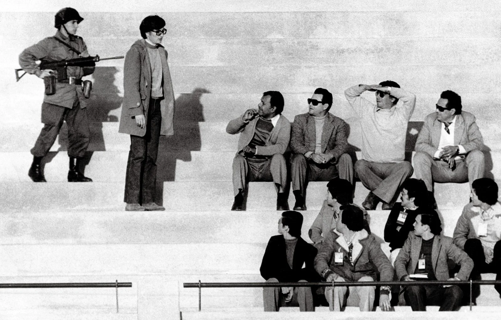 Argentinian soldiers force spectators to leave the stadium before the start of the game during the 1978 World Cup finals.