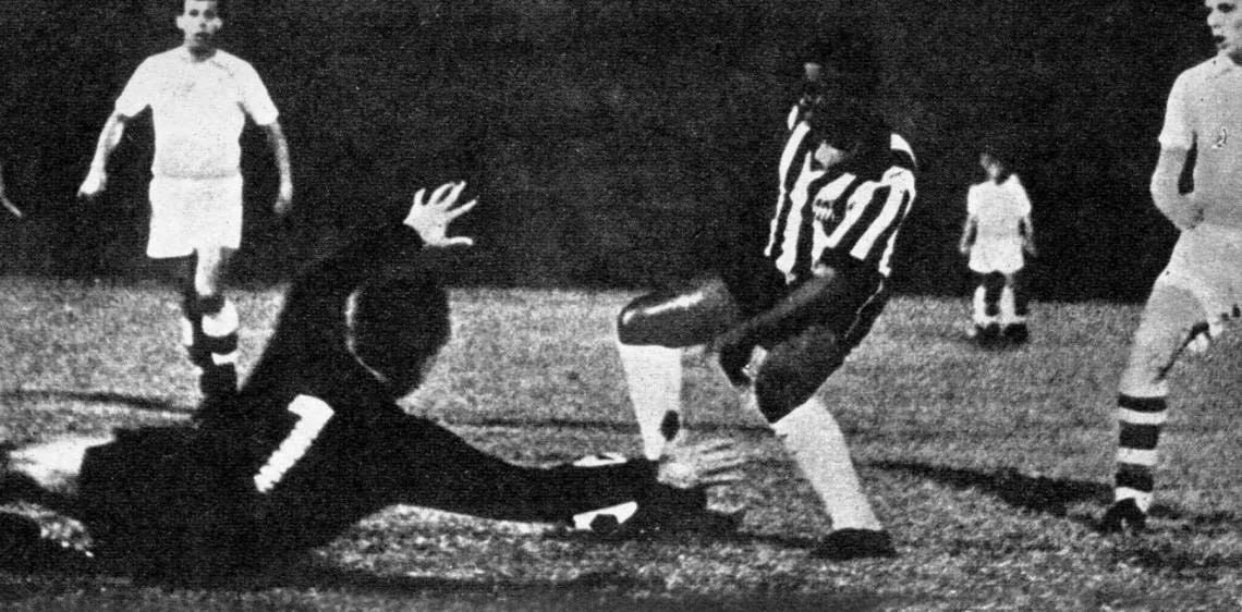 Czechoslovakia playing Santos in a friendly match in Chile, 1965.
