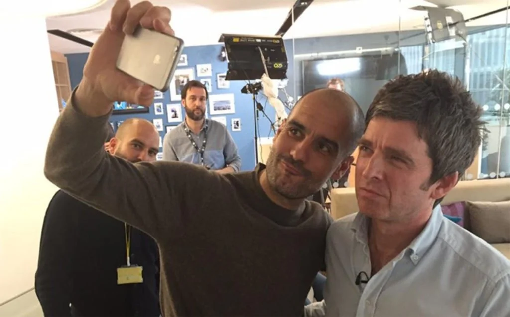 Pep takes a selfie with his friend, Noel Gallagher.