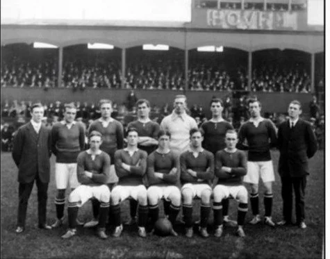 Hibernian supporters with a knack for history know that pre-WW I Hibernian forward, James Hendren came to Easter Road from Cowdenbeath in 1910. That path from Collier’s Den to Hibs, though, had included an extensive detour. From mid-1906 to March 1908, “Jimmy” was tearing up the fields of Central Illinois as part of the Benld, IL team. During the 1907-1908 St. Louis Athletic League season, Hendren joined the Innisfails team. Innisfails, who took their team name from the Gaelic word for “Welcome to the Island,” had been competing in St. Louis leagues for many years. The year Hendren played for them, however, they called Benld home.