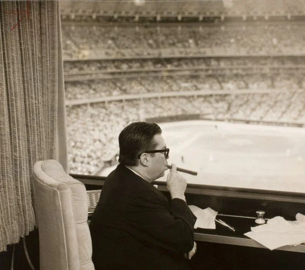 Houston Stars owner Roy Hofheinz watches from the house he built within the Astrodome.