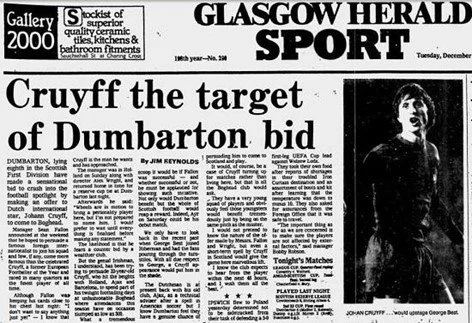 The Glasgow Herald’s report on Dumbarton’s swoop for Johan Cruyff.