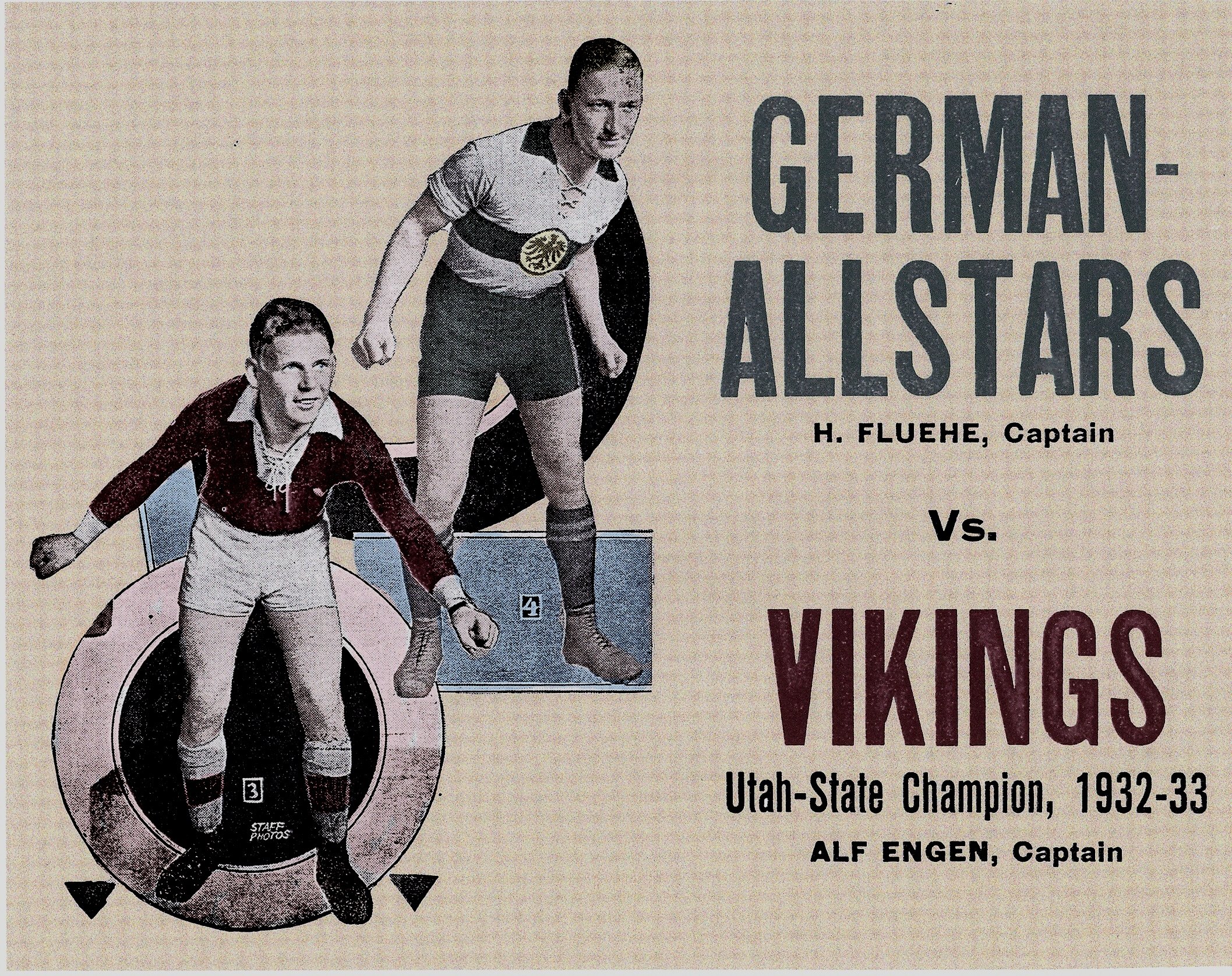 Helmuth Fluehe from Einbeck in Germany was the star of AC Germania. After shortly arriving in Utah and playing for AC Germania, he switched and played for Vikings and became good friends with Alf Engen. After four years, he switched back to AC Germania where he played for seven years. He helped AC Germania win the Daynes Cup and State Championship in 1937, 1938, and 1939. He continued to play during WWII against German prisoners of war at Fort Douglas.