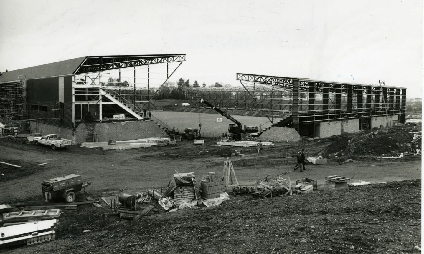 St. Johnstone’s current ground, McDiarmiad Park, during construction.