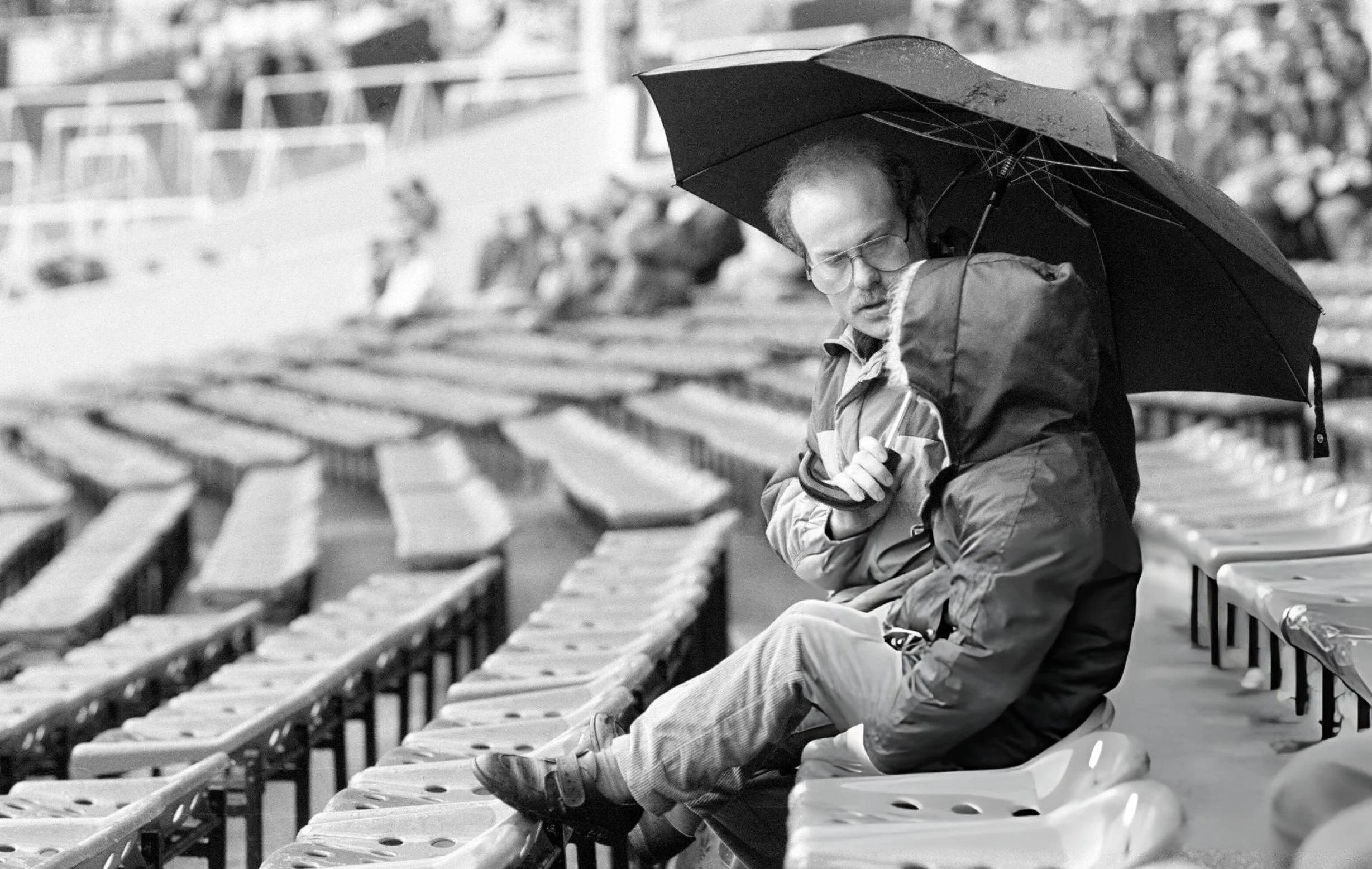 A father and son endure the weather during the Mercantile Credit Football Festival.